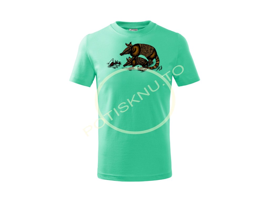 Tričko s motivem pásovců. Nenalezli jste barvu trička, která by se Vám líbila, nebo byste rádi motiv např. na šatech či mikině? Kontaktujte nás, rádi Vám vyhovíme a připravíme textil dle Vašeho přání.